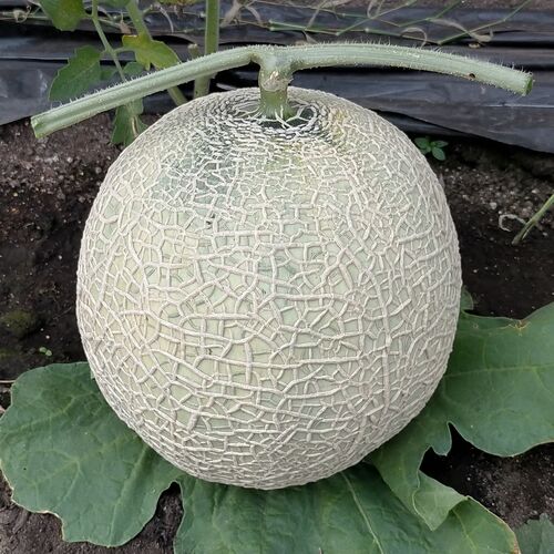 メロン収穫しました。52日で1500℃。重さは2.1kg。一番大きいのは2.4kgありました。デカすぎィ! 大きすぎてネットはしょぼい。肌は白いけど、大きすぎてもう外観どうでもいいやと途中から傘掛け適当にしといたので一部日焼けして黒くなりました。香りがなか…