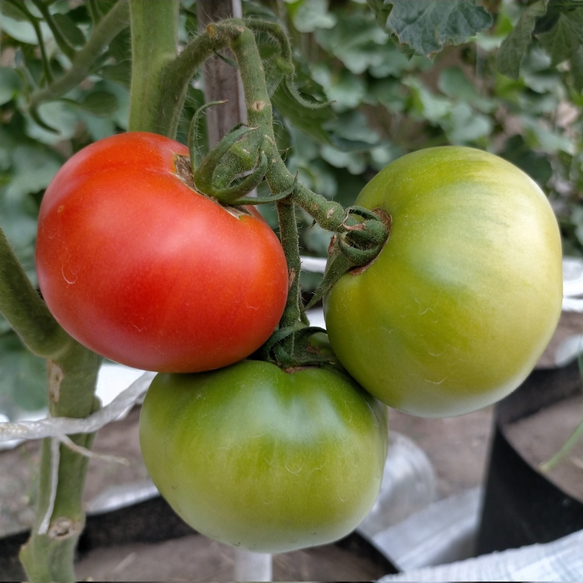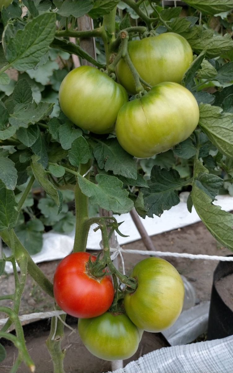 ヒーローオブロッキンジ。この品種だけ着果率が極めて悪く、10%くらいしか着果してません。しかも肩コケ。暑すぎるのも原因かもしれないけど、他の品種は問題ないので、なんかそういう特性があるのかな。