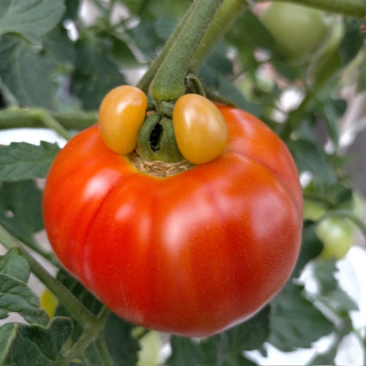 イエローブランデーワイントマト。でかくなりそう。形は悪いけど収穫量自体は悪くないようで、育てやすいし家庭菜園には適してそう。来年はサンロードと同じくらい作ろうかな。