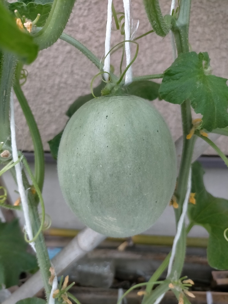 Jenny Lind カボチャみたいなメロン。この品種はかなり育てやすい。これで味がよければ、見た目にかかわらず使っていってもいいけども。