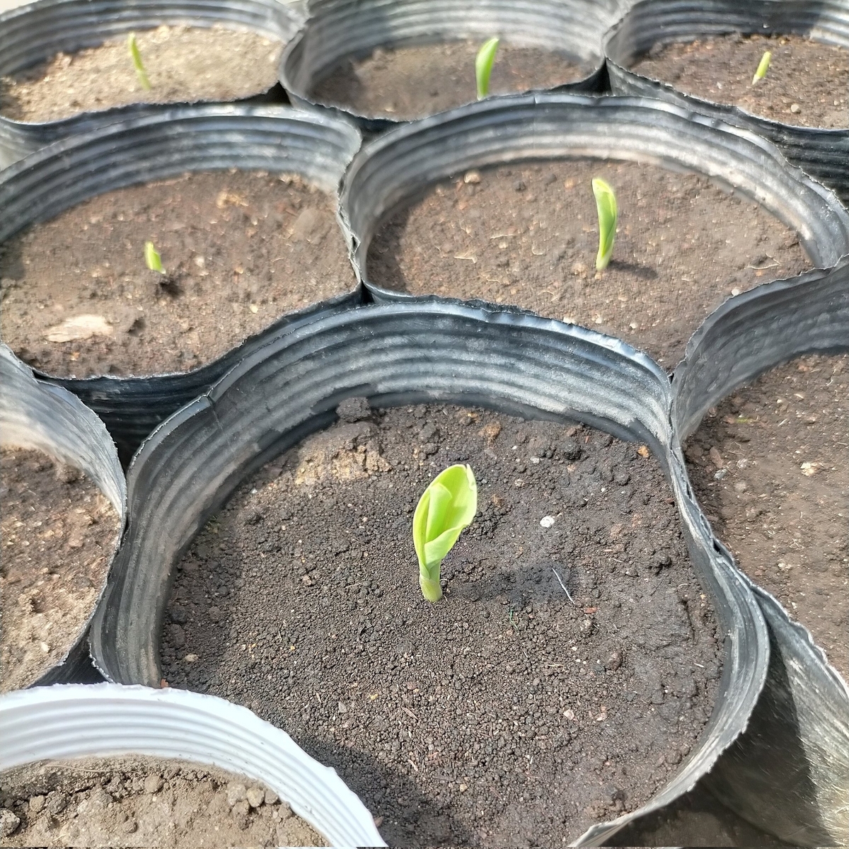 赤いスイートコーンの大和ルージュ。贅沢な10.5cmポット育苗で発芽してきました。調べたところこの品種はタイのSiam Ruby Queenという品種と同じ(と言ったら怒られるかもしれないけど)ものっぽいです。東南アジアでは結構作られてるようで、調べるとみんなうまそうに食べてます。しかも、このトウモロコシは生で食べなきゃいけねえ!みたいに言われているらしく、サツマイモのような風味だとか、トロピカルスイートコーンとかいう文句も相まって、謎。食べるの楽しみだけど怖いよ。