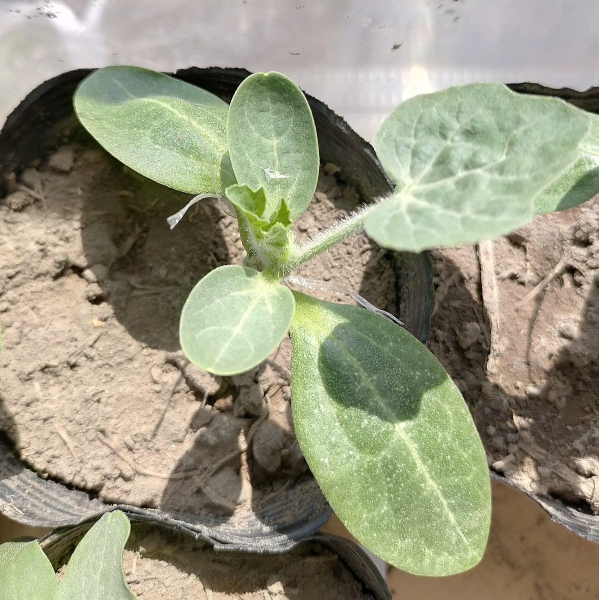スイカ苗。いい感じだね。4月下旬定植予定。もうすぐだ。品種はひとりじめ、味きらら、大金星の3種類ある。今年はコガネムシ幼虫のいない(たぶん)隔離地の地床栽培だから安心(たぶん)。
