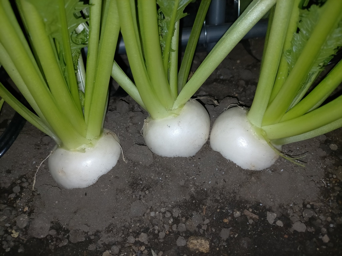 カブが食べ放題になってます。あとレタスも食べ放題。レタスはなんだかんだで400g程度のサイズになってて、味もいいし今までで一番いい出来かも。