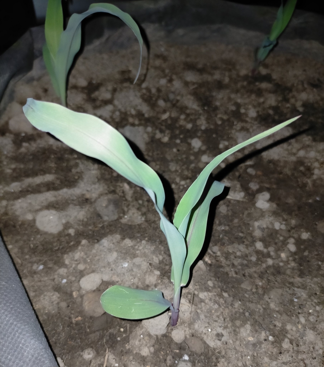 赤いスイートコーン、大和ルージュを定植。プランターに16株。収穫はたぶん7月上旬の予定。
