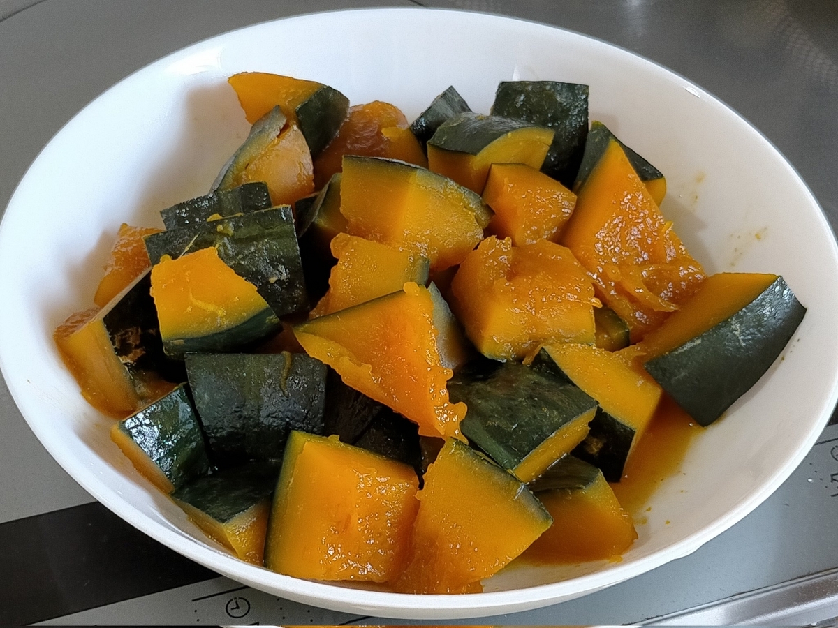 とりあえず煮物。ホクホク感は弱めだけど少しはある。甘さは十分あって、カボチャの味もある。ホクホクな方が好みだけど、これはこれでうまい。タキイさん早くホクホク系の耐病性品種出してください!