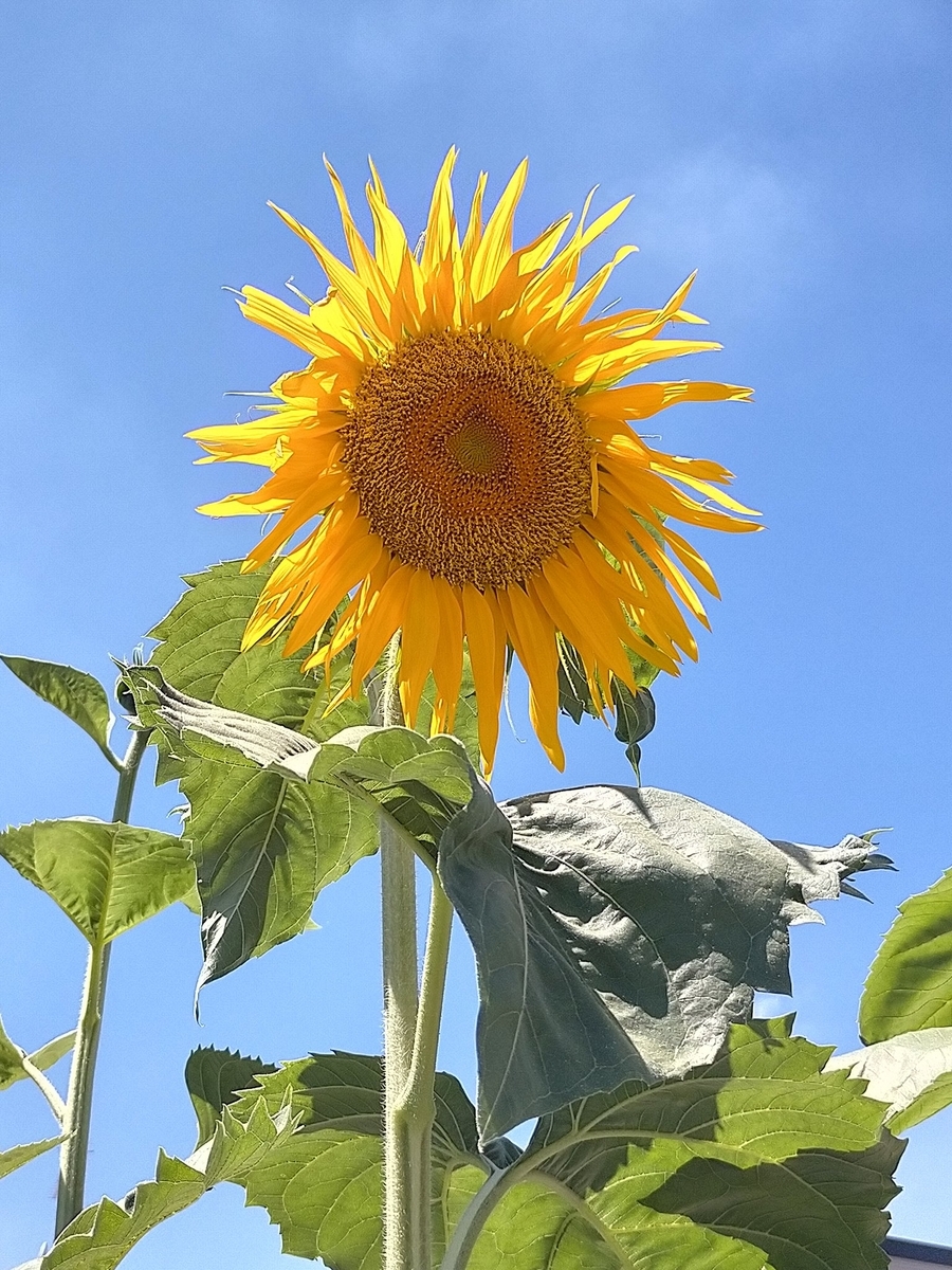 ヒマワリの種もらったので適当に蒔いてみたらいい花咲きました。播種から2ヶ月で3mくらいになるのやばいな。