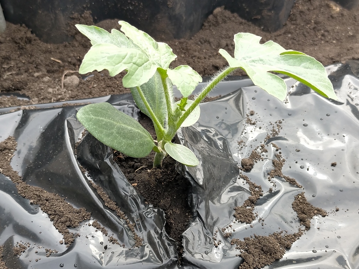 メロン植えました。去年よりは根っこあったけどフニャフニャの苗。育苗で失敗するなら育苗せず定植してしまえばいいと思って、早めの2枚半で植えたけど、実際もっと早くてもよかったかも。なんならもう育苗無しで、4月上旬に直播きしてロケットスタート決めちゃうのもありかもしれない。初期生育が強まる分、低段で交配できるから、そんなに遅れない気がする。