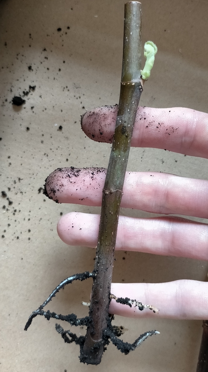 挿し木から2週間経ったイチジク。根っこ出てました。根っこさえ出れば何とかなるらしい。来年収穫できるかな?